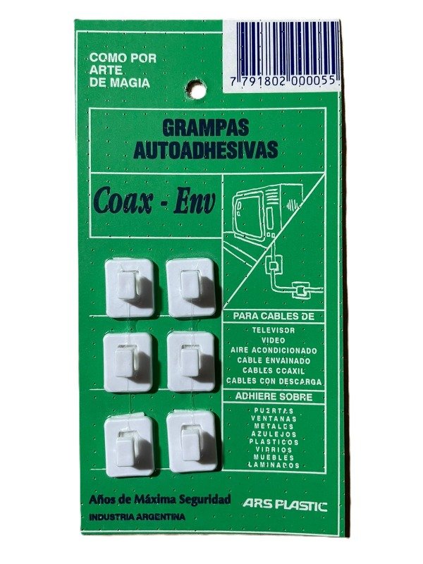 6 Grampas Plasticas Autoadhesivas ARS Plastic modelo Coax-Env