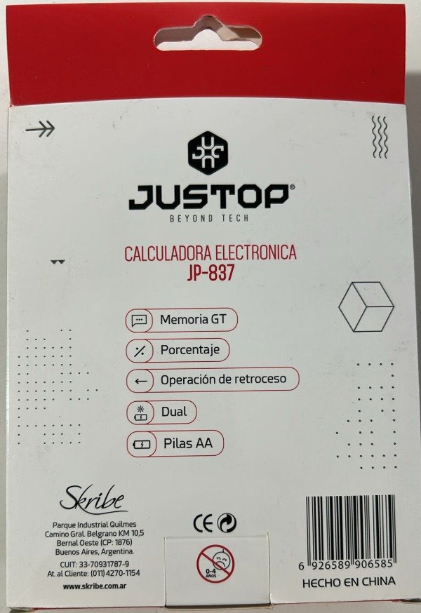 CALCULADORA TIPO COMERCIAL JUSTOP 12 DIGITOS