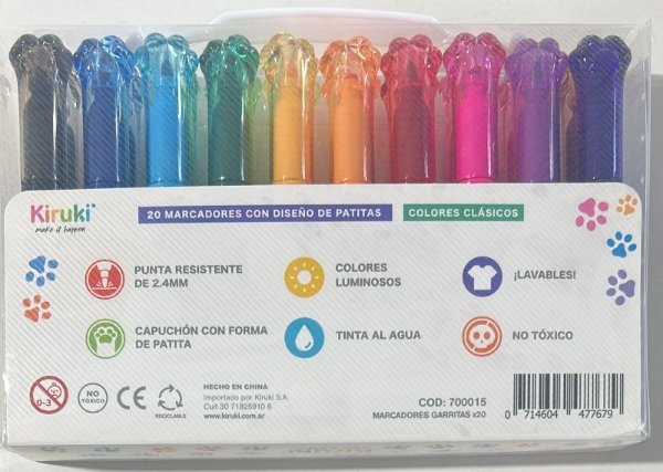 SET VALIJA DE 20 MARCADORES CON DISEÑO DE PATITAS COLORES VIVOS